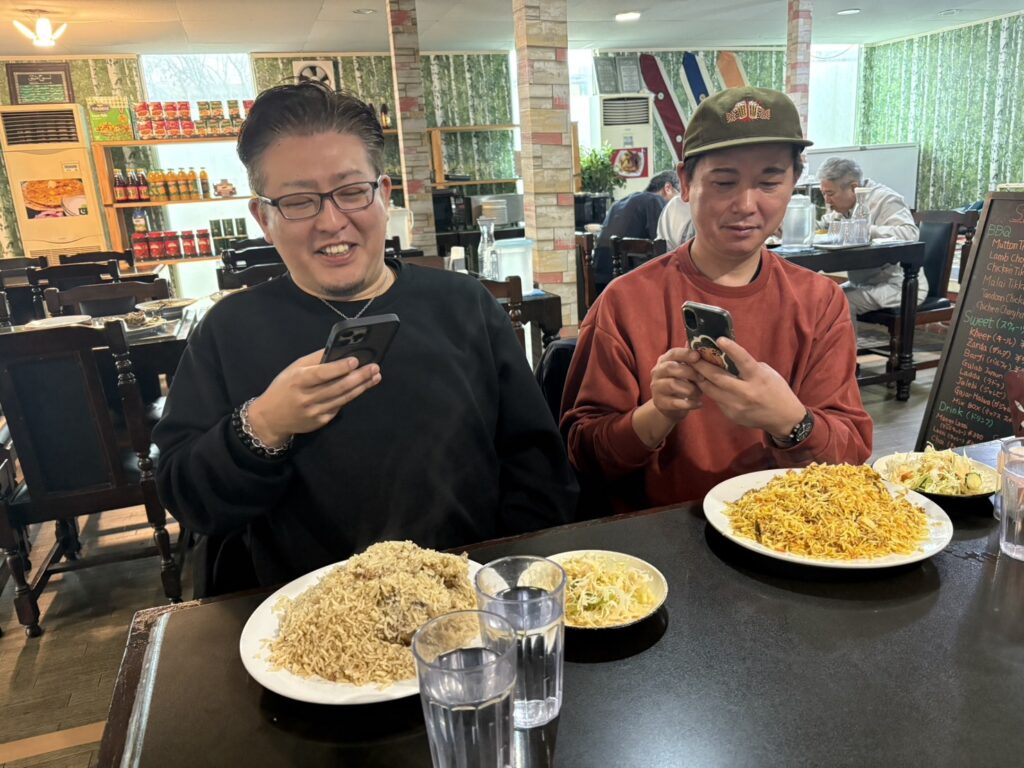 スパイス慣れした2人はマトンビリヤニ、マトンプラオを注文。